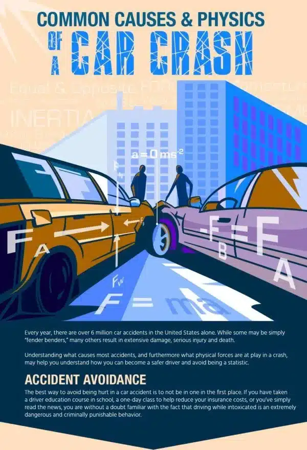 Understanding what causes most accidents, and furthermore what physical forces are at play in a crash, may help you understand how you can become a safer driver and avoid being a statistic.