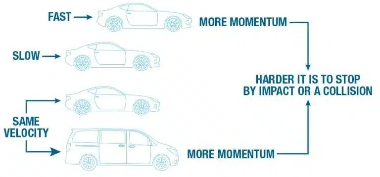 An object has a large momentum if either its mass or its velocity is large. Thus, a fast-moving car has more momentum than a slow-moving car, if they have the same mass. Using the same principle, a heavy truck will have more momentum than a small car even if they are traveling at the same speed.