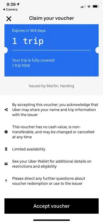 The free Uber ride home vouchers are specific to our partner locations and are only good for rides hailed from their location.